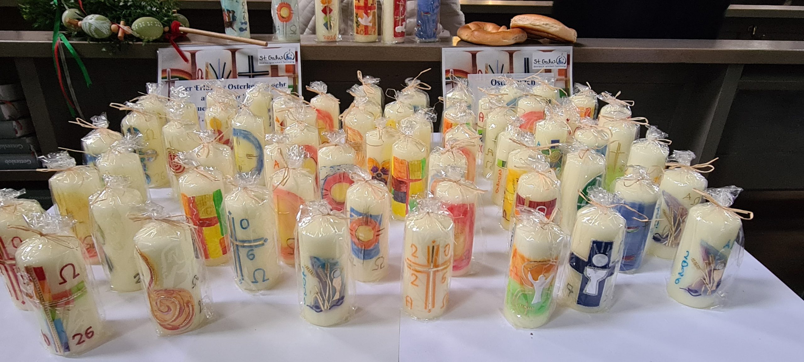 Einige engagierte Frauen aus unserer Kirchengemeinde haben ab Februar 350 Kerzen kunstvoll mit Ostermotiven verziert. Der Erlös brachte das stolze Ergebnis von 1.477,73 Euro. 1000 Euro gehen an die geplante neue Chororgel in St. Gallus. Der restliche Betrag wird dem Projekt „Miteinander Essen“ gespendet. Danke an alle beteiligten Frauen für diese gelungene Osteraktion.